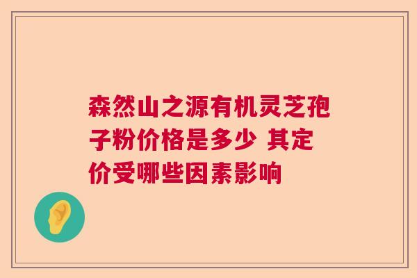 在健康养生备受关注的今天,各类滋补品纷纷走进人们的视野。其中,森然山之源有机灵芝孢子粉以其卓越的品质和独特的功效,成为养生市场上的一颗璀璨明星,而其价格也反映出它的珍贵之处。